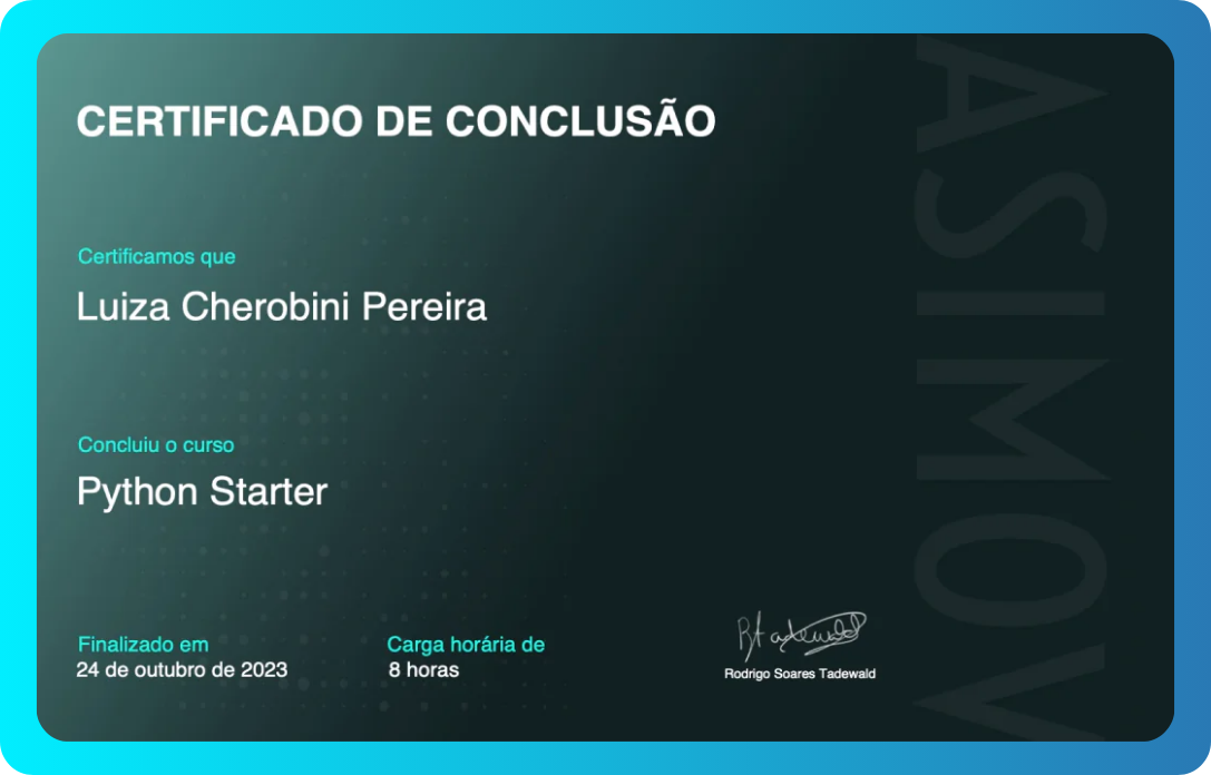 Instrutor de Python e sócio da Asimov Academy. Possui graduação em Biomedicina e doutorado em Biologia Celular e Molecular pela UFRGS. Aprendeu Python para analisar dados no seu TCC e, desde então, nunca parou de aprender e aplicar a programação em suas rotinas diárias.