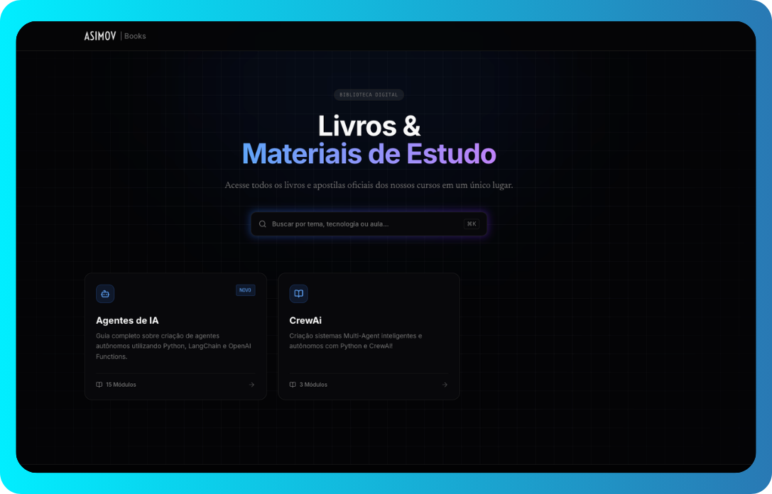 Você terá acesso a uma plataforma personalizada e fácil de usar, com acesso completo a todos os conteúdos da Asimov.