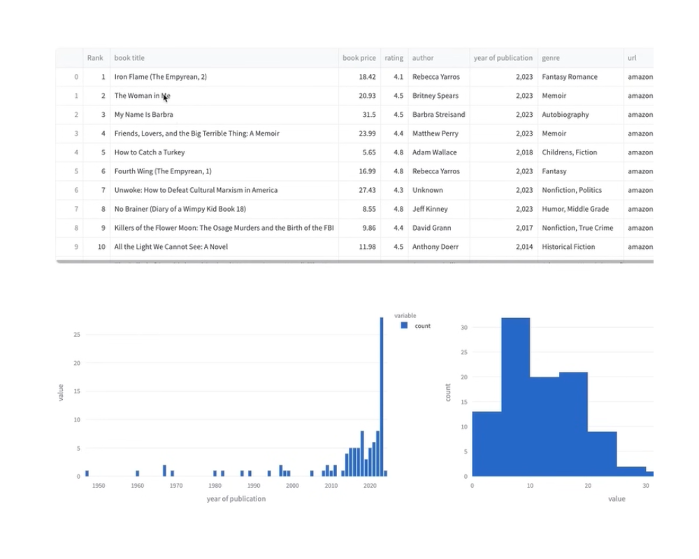 Entenda como criar um aplicativo interativo, com gráficos e tabelas que mostram preços, datas de publicação e avaliações de livros na Amazon.